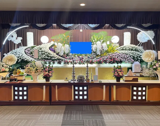 弊社の斎場において2日間の葬儀を行います。ご遺体の病院からの搬送や祭壇一式、湯灌・納棺