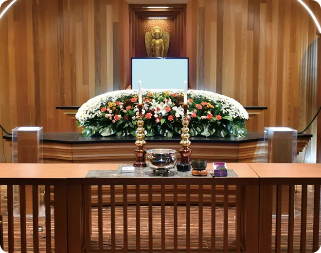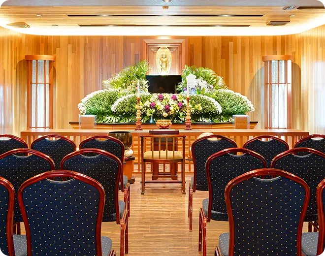 弊社の斎場において2日間の葬儀を行います。ご遺体の病院からの搬送や祭壇一式、湯灌・納棺